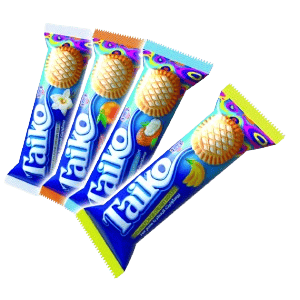 نام محصول: بیسکوئیت کرم دار تایکو کد: 553 نوع: موز/ پرتغال/ نارگیل/ وانیل تعداد در کارتن: 24 بسته